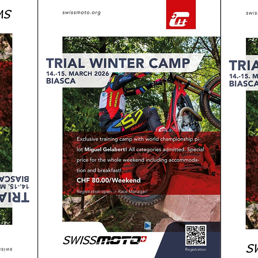 | Art | Datum 14.–15.03.2026 | Event Camp Trial CTR Biasca | Veranstaltungsort Biasca (TI) | Sportart Trial | Speichern | SR/ZP |