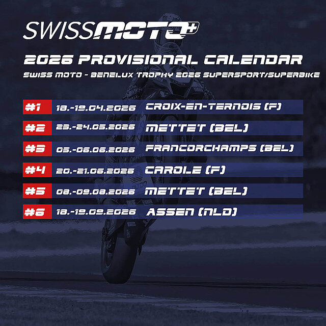 Willkommen im Swiss Moto Newscenter – deinem zentralen Anlaufpunkt für alle Neuigkeiten rund um unseren Verband und die Welt des Motorradfahrens und des Motorsports. Hier findest du aktuelle Updates, spannende Artikel und exklusive Einblicke in die Szene. Klick dich durch und erfahre, was die Motorradwelt bewegt!