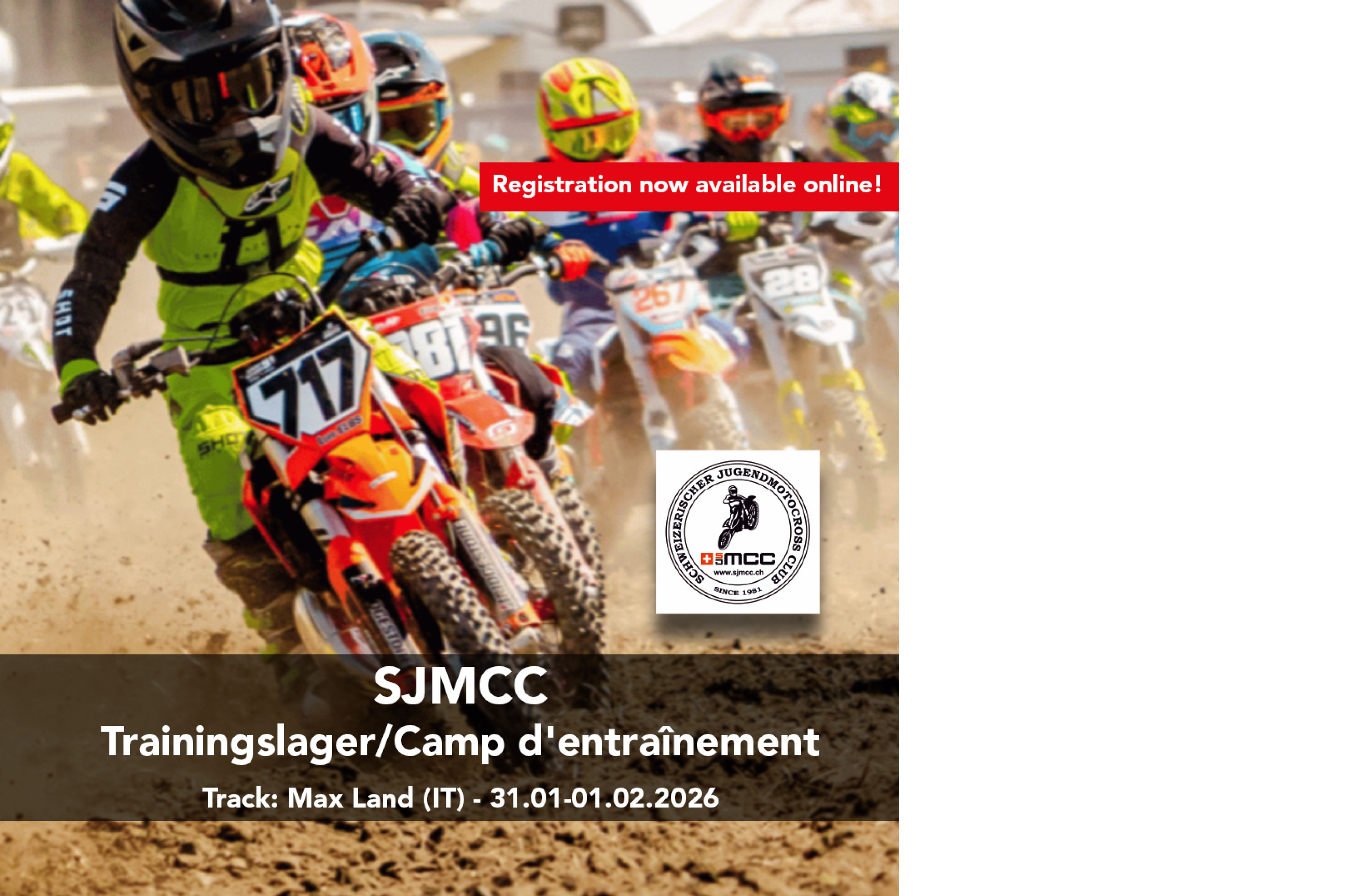 Zeitgleich mit dem Swiss Moto "Swiss Olympic - Talent Card" Trainingsweekend im MaxLand (IT) vom 31. Januar bis 1. Februar 2026 bietet auch der SJMCC erneut ein Trainingslager für den Nachwuchs an. Das Trainingslager des SJMCC findet separat, jedoch auf derselben Anlage statt. Die Organisation und Durchführung erfolgen eigenständig durch den SJMCC.
